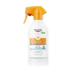 Fotoprotector en spray de fácil aplicación para niños. Brinda alta protección UVA/UVB resistente al agua, protege la piel sensible infantil y fortalece su barrera natural con fórmula hipoalergénica y textura ligera.